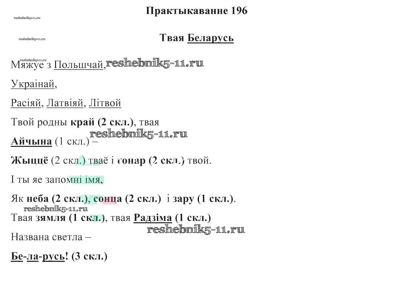 Белорусский язык за 6 класс Валочка Учебник Национальный институт образования практыкаванне 196