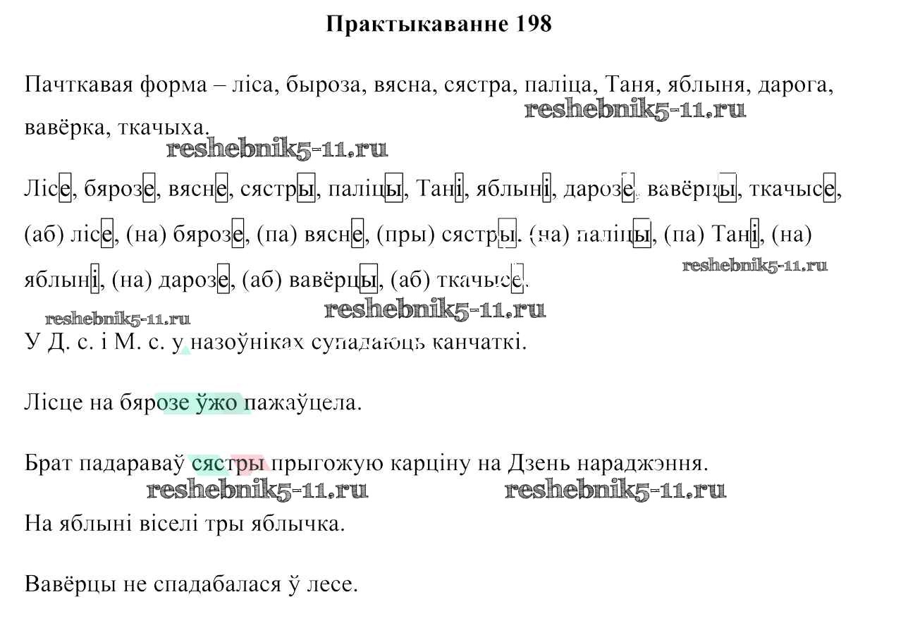 Готовая домашняя работа с ответами по Белорусскому языку за 6 класс Валочка, Зелянко, Мартынкевіч, Якуба, Бажкова Учебник Национальный институт образования 2020 - Практыкаванні 198