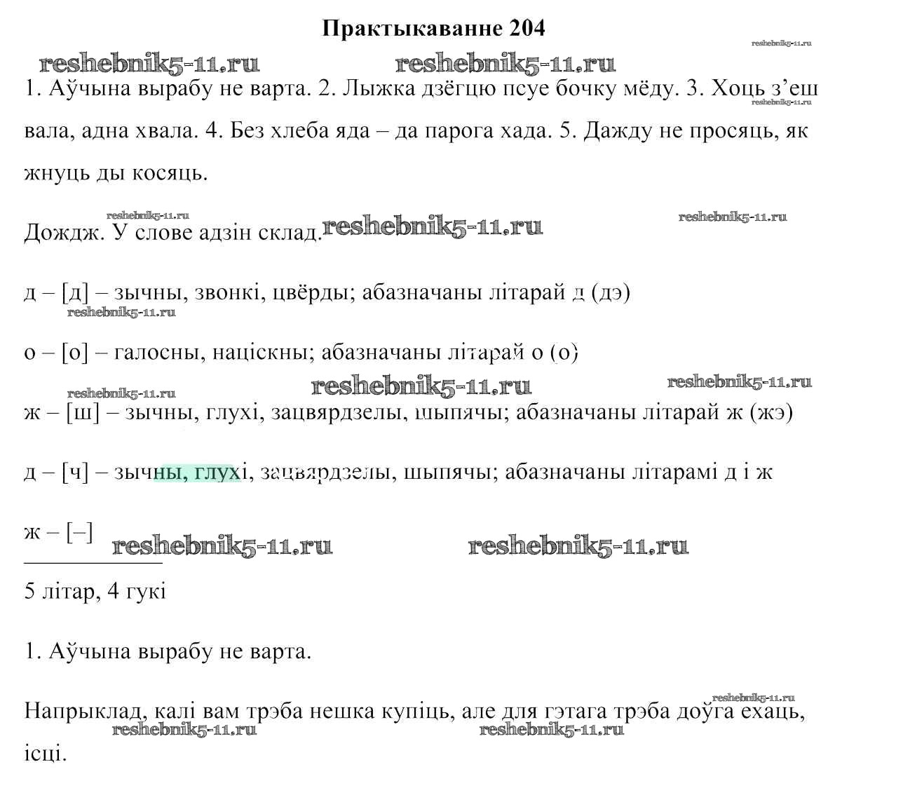 Готовая домашняя работа с ответами по Белорусскому языку за 6 класс Валочка, Зелянко, Мартынкевіч, Якуба, Бажкова Учебник Национальный институт образования 2020 - Практыкаванні 204