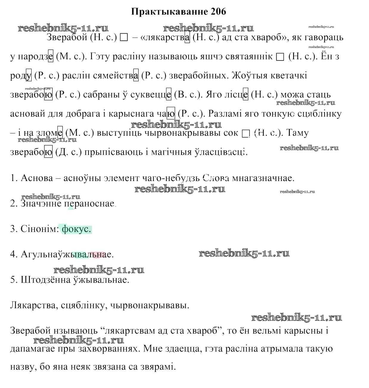 Готовая домашняя работа с ответами по Белорусскому языку за 6 класс Валочка, Зелянко, Мартынкевіч, Якуба, Бажкова Учебник Национальный институт образования 2020 - Практыкаванні 206