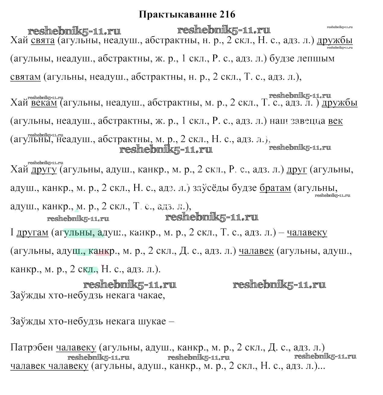 Белорусский язык за 6 класс Валочка Учебник Национальный институт образования практыкаванне 216