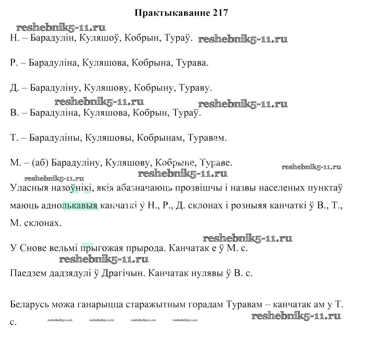Готовая домашняя работа с ответами по Белорусскому языку за 6 класс Валочка, Зелянко, Мартынкевіч, Якуба, Бажкова Учебник Национальный институт образования 2020 - Практыкаванні 217
