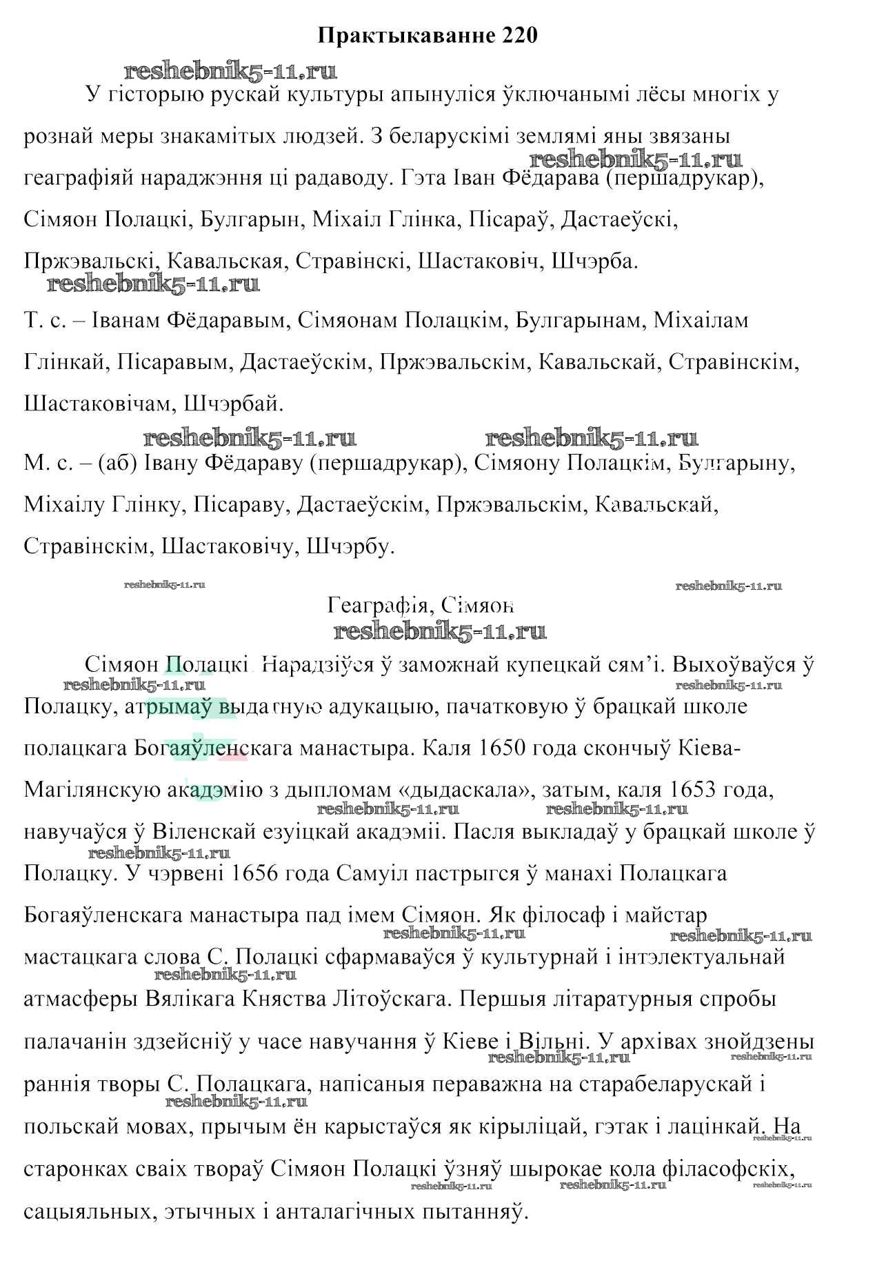 Готовая домашняя работа с ответами по Белорусскому языку за 6 класс Валочка, Зелянко, Мартынкевіч, Якуба, Бажкова Учебник Национальный институт образования 2020 - Практыкаванні 220