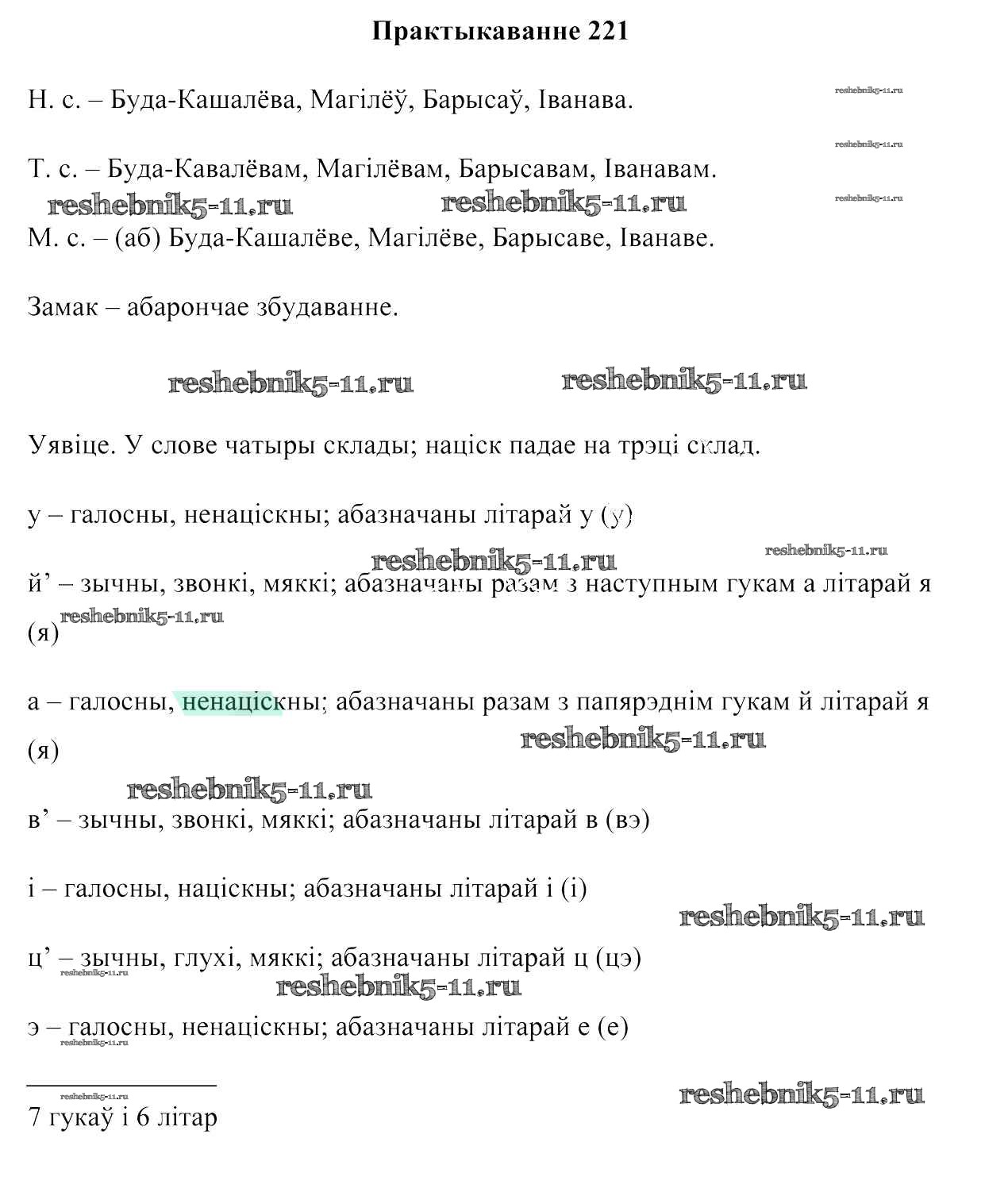 Готовая домашняя работа с ответами по Белорусскому языку за 6 класс Валочка, Зелянко, Мартынкевіч, Якуба, Бажкова Учебник Национальный институт образования 2020 - Практыкаванні 221