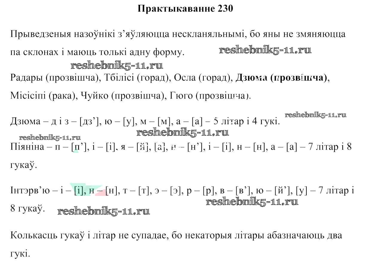 Готовая домашняя работа с ответами по Белорусскому языку за 6 класс Валочка, Зелянко, Мартынкевіч, Якуба, Бажкова Учебник Национальный институт образования 2020 - Практыкаванні 230