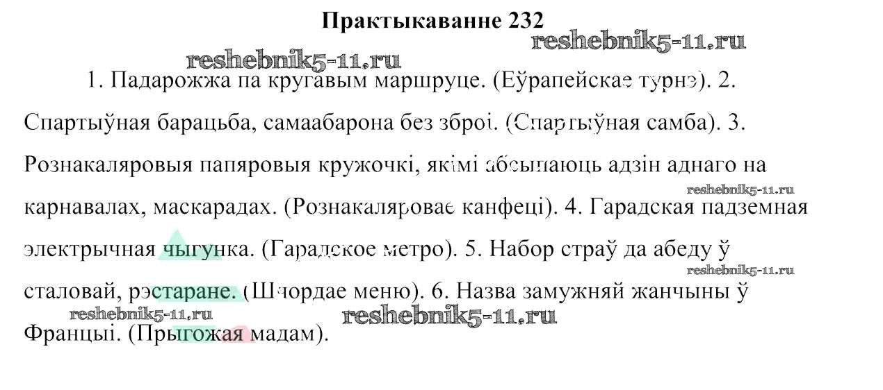 Готовая домашняя работа с ответами по Белорусскому языку за 6 класс Валочка, Зелянко, Мартынкевіч, Якуба, Бажкова Учебник Национальный институт образования 2020 - Практыкаванні 232