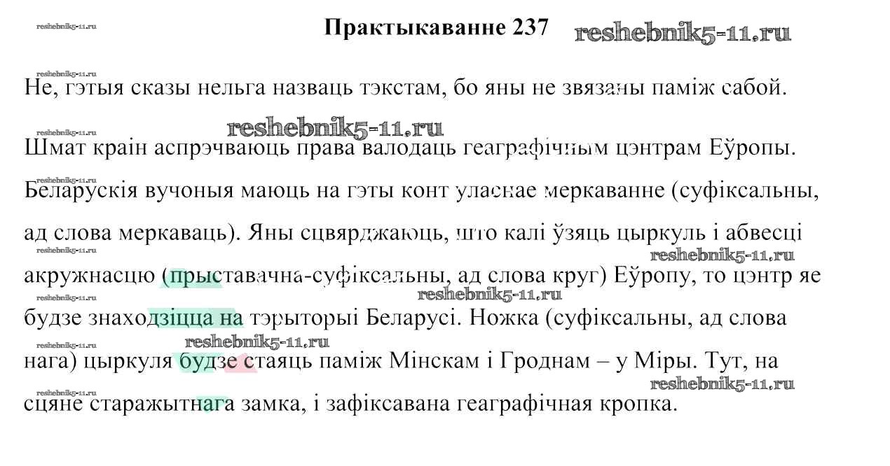 Белорусский язык за 6 класс Валочка Учебник Национальный институт образования практыкаванне 237