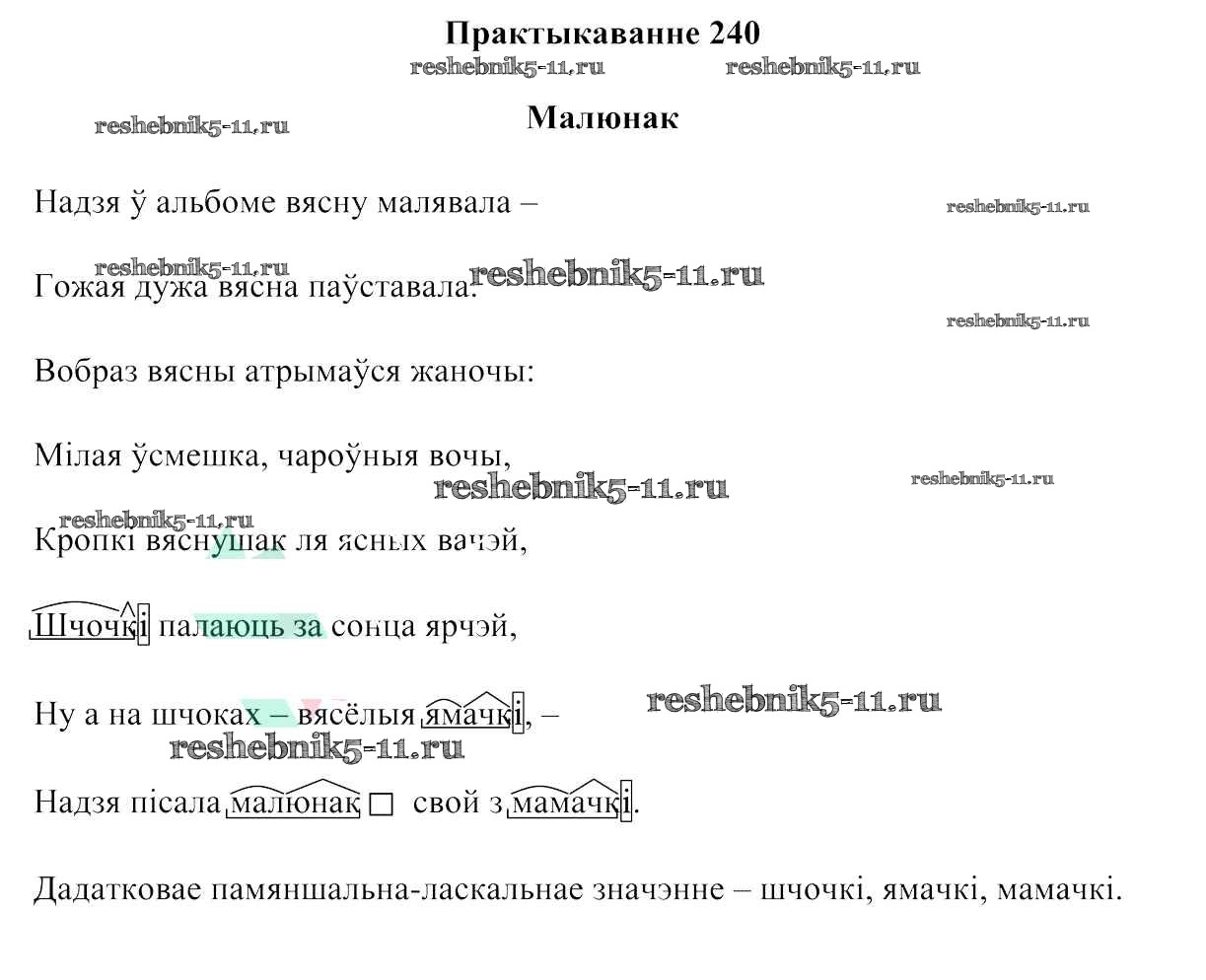 Готовая домашняя работа с ответами по Белорусскому языку за 6 класс Валочка, Зелянко, Мартынкевіч, Якуба, Бажкова Учебник Национальный институт образования 2020 - Практыкаванні 240