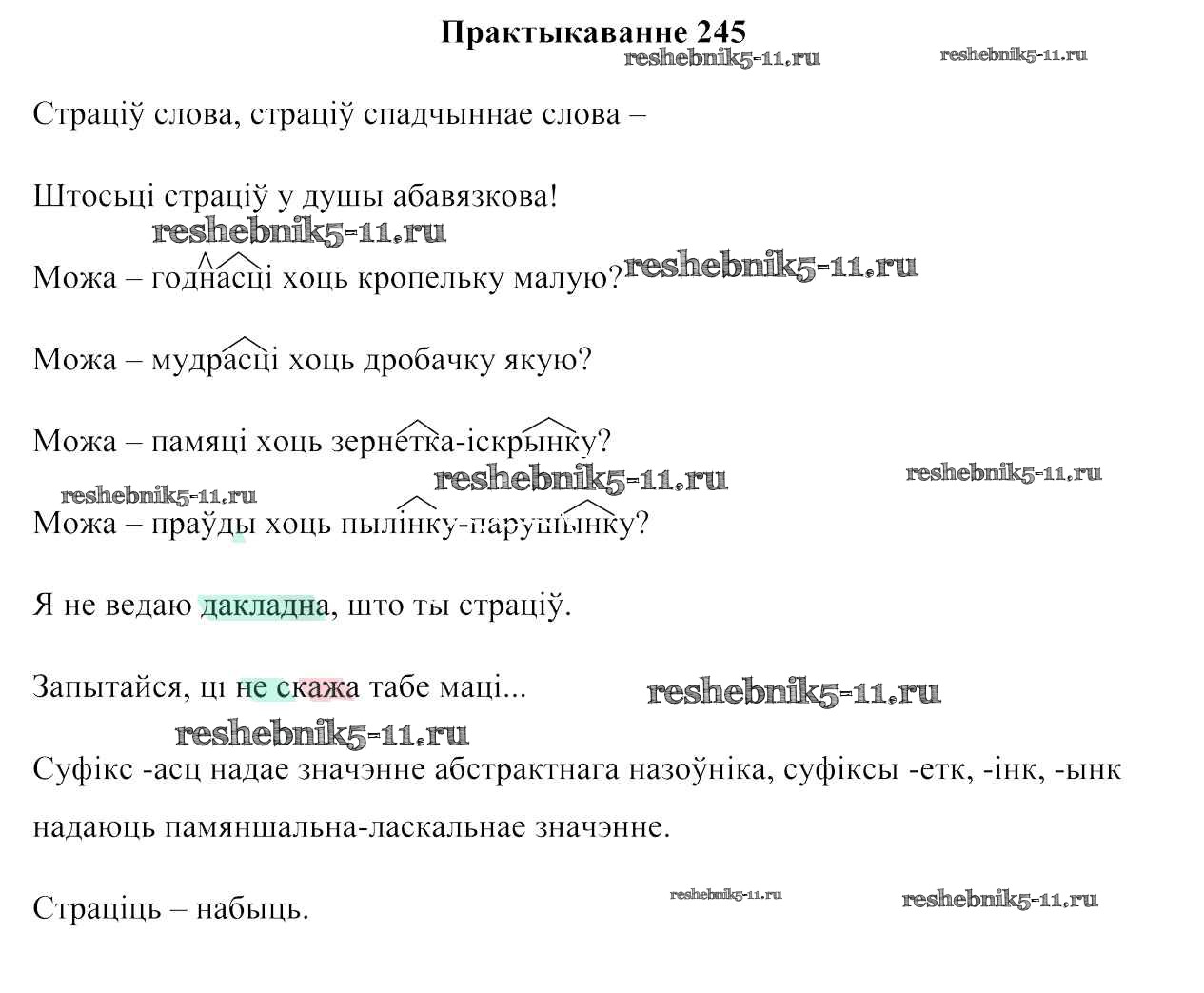 Готовая домашняя работа с ответами по Белорусскому языку за 6 класс Валочка, Зелянко, Мартынкевіч, Якуба, Бажкова Учебник Национальный институт образования 2020 - Практыкаванні 245