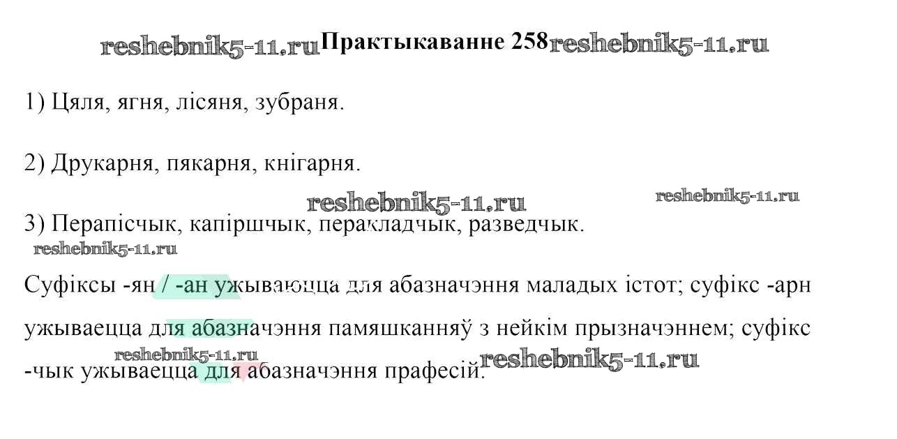 Готовая домашняя работа с ответами по Белорусскому языку за 6 класс Валочка, Зелянко, Мартынкевіч, Якуба, Бажкова Учебник Национальный институт образования 2020 - Практыкаванні 258