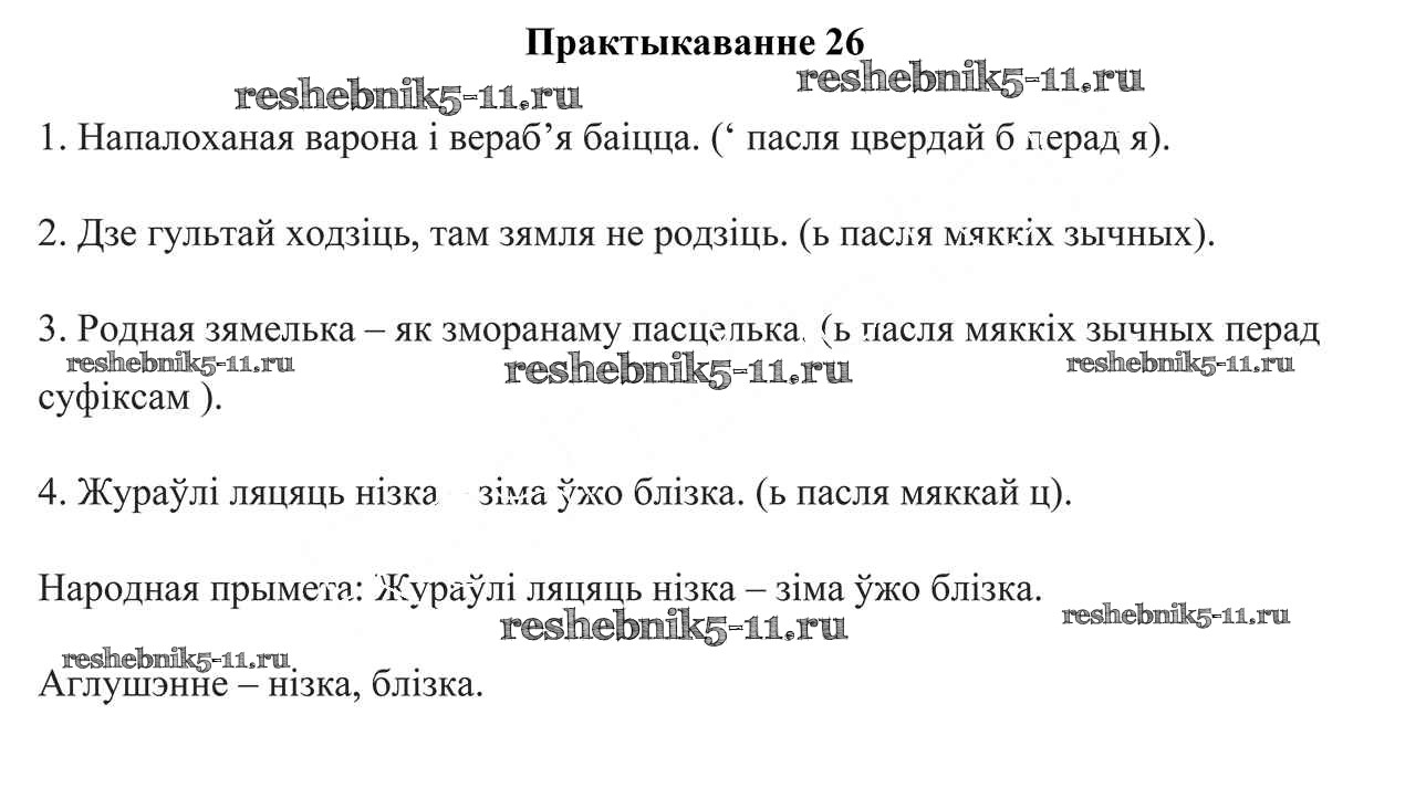 Готовая домашняя работа с ответами по Белорусскому языку за 6 класс Валочка, Зелянко, Мартынкевіч, Якуба, Бажкова Учебник Национальный институт образования 2020 - Практыкаванні 26