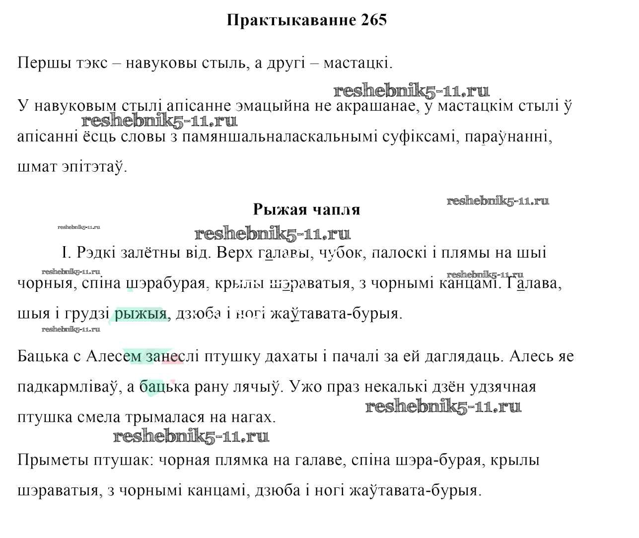 Белорусский язык за 6 класс Валочка Учебник Национальный институт образования практыкаванне 265
