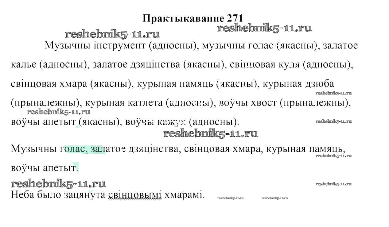 Готовая домашняя работа с ответами по Белорусскому языку за 6 класс Валочка, Зелянко, Мартынкевіч, Якуба, Бажкова Учебник Национальный институт образования 2020 - Практыкаванні 271