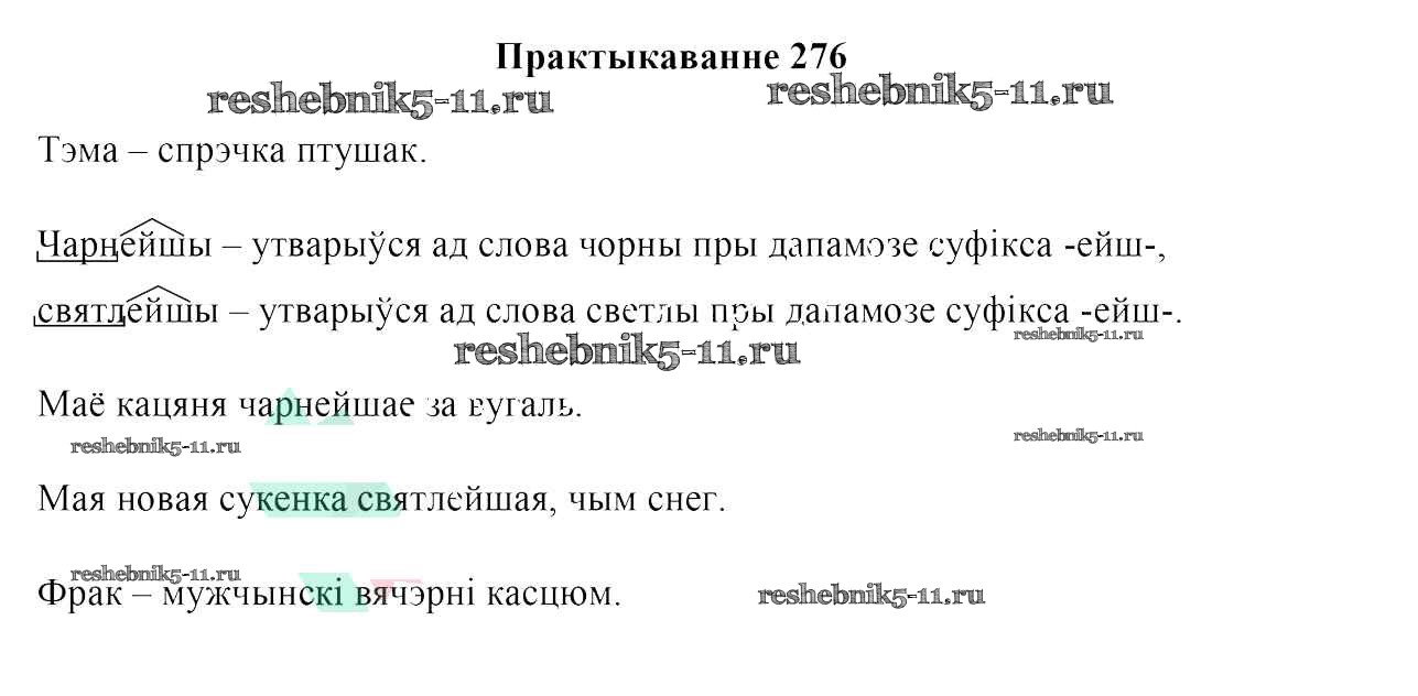 Готовая домашняя работа с ответами по Белорусскому языку за 6 класс Валочка, Зелянко, Мартынкевіч, Якуба, Бажкова Учебник Национальный институт образования 2020 - Практыкаванні 276