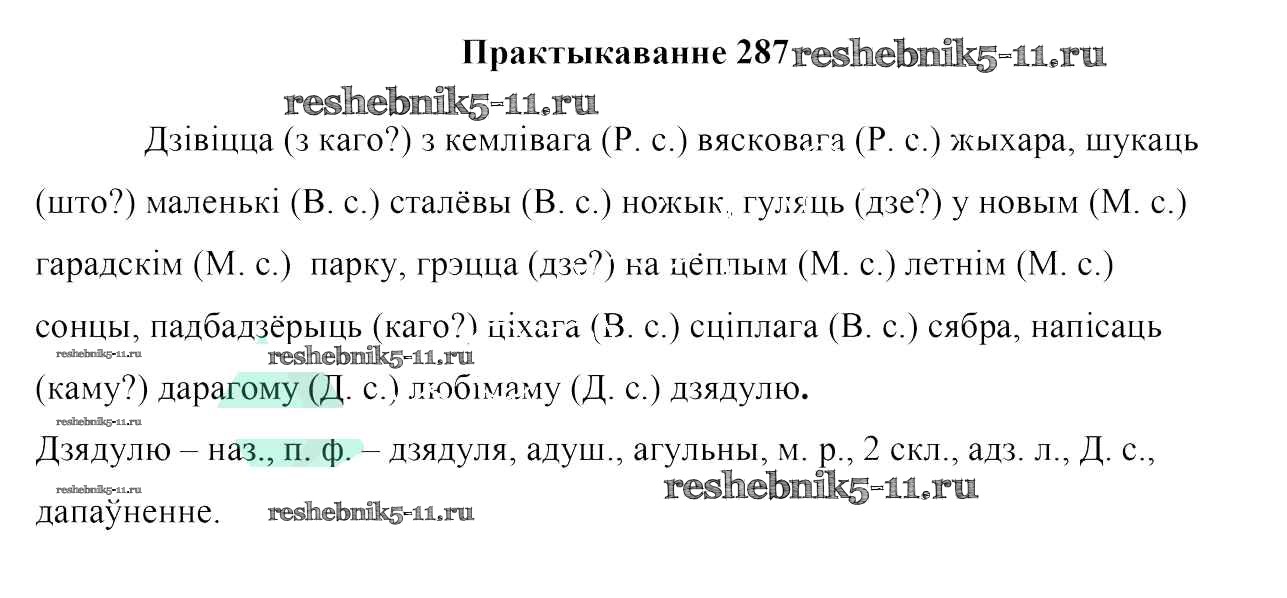 Белорусский язык за 6 класс Валочка Учебник Национальный институт образования практыкаванне 287
