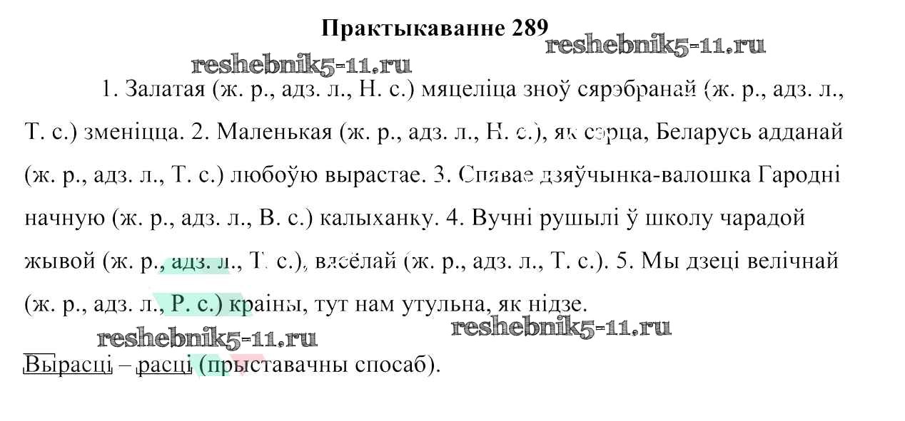 Готовая домашняя работа с ответами по Белорусскому языку за 6 класс Валочка, Зелянко, Мартынкевіч, Якуба, Бажкова Учебник Национальный институт образования 2020 - Практыкаванні 289