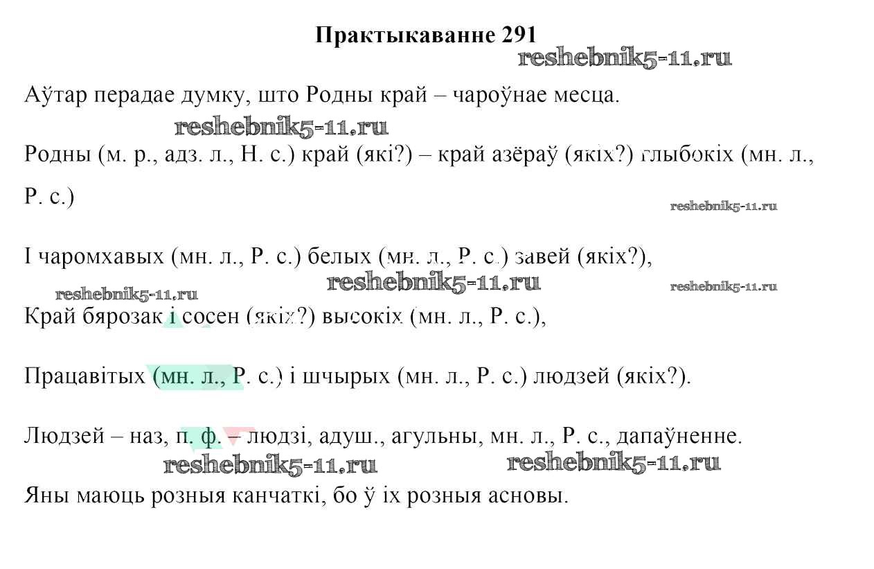 Готовая домашняя работа с ответами по Белорусскому языку за 6 класс Валочка, Зелянко, Мартынкевіч, Якуба, Бажкова Учебник Национальный институт образования 2020 - Практыкаванні 291