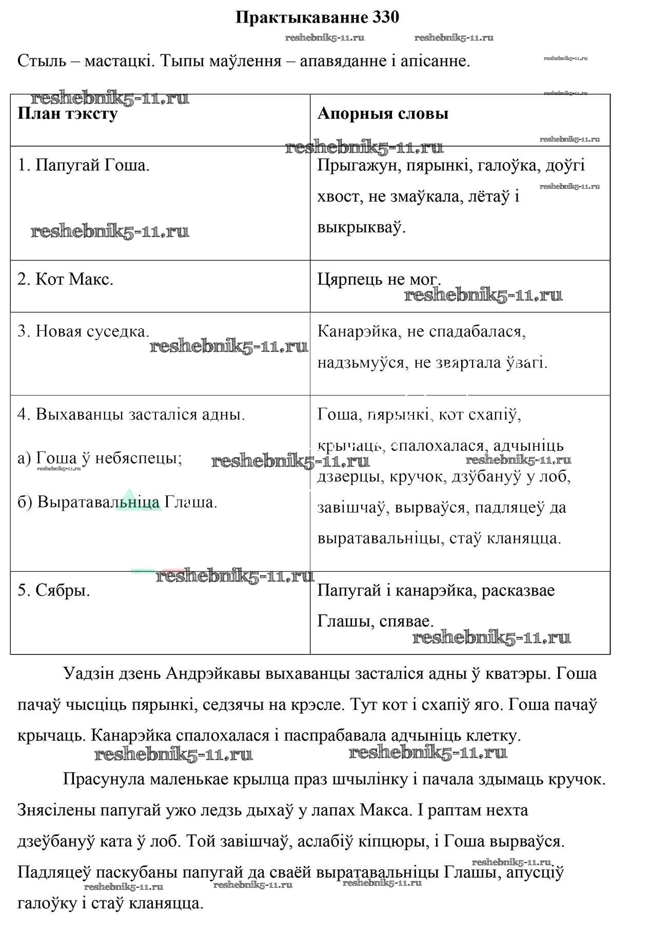 Белорусский язык за 6 класс Валочка Учебник Национальный институт образования практыкаванне 330