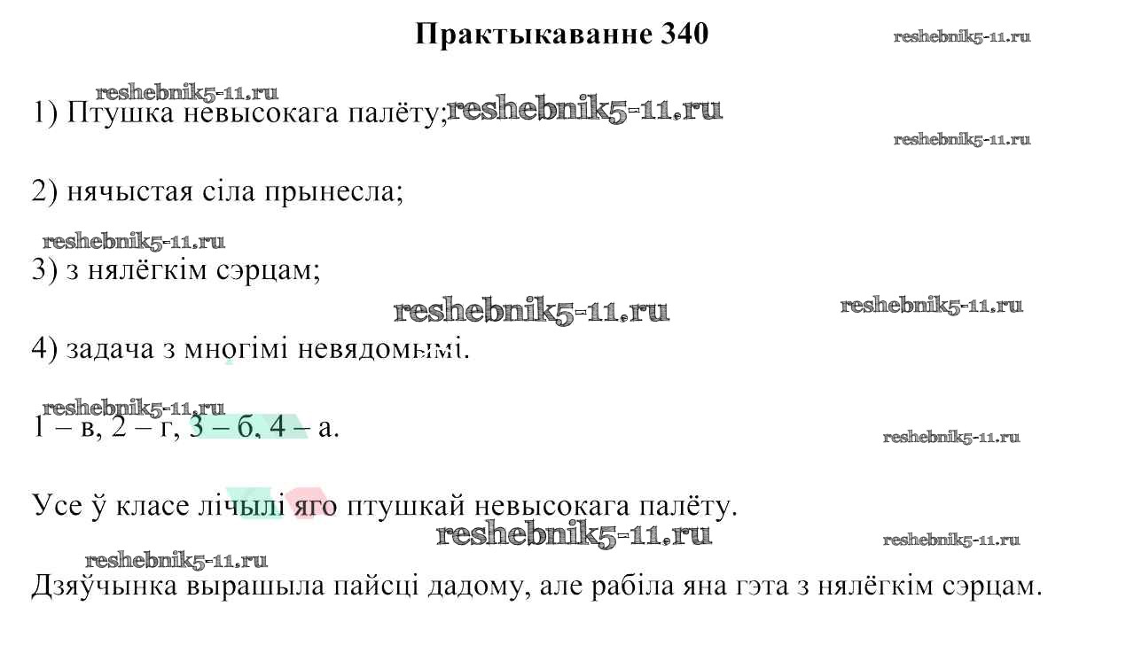 Готовая домашняя работа с ответами по Белорусскому языку за 6 класс Валочка, Зелянко, Мартынкевіч, Якуба, Бажкова Учебник Национальный институт образования 2020 - Практыкаванні 340