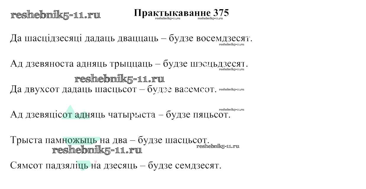 Готовая домашняя работа с ответами по Белорусскому языку за 6 класс Валочка, Зелянко, Мартынкевіч, Якуба, Бажкова Учебник Национальный институт образования 2020 - Практыкаванні 375