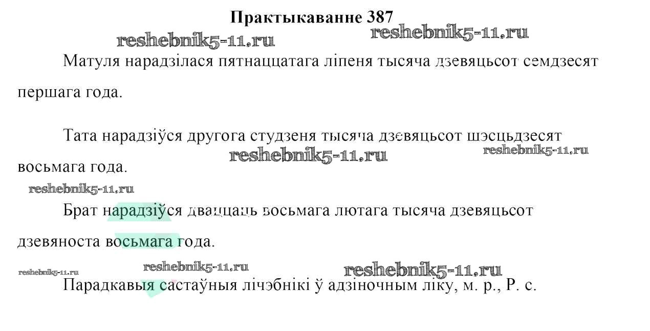 Готовая домашняя работа с ответами по Белорусскому языку за 6 класс Валочка, Зелянко, Мартынкевіч, Якуба, Бажкова Учебник Национальный институт образования 2020 - Практыкаванні 387