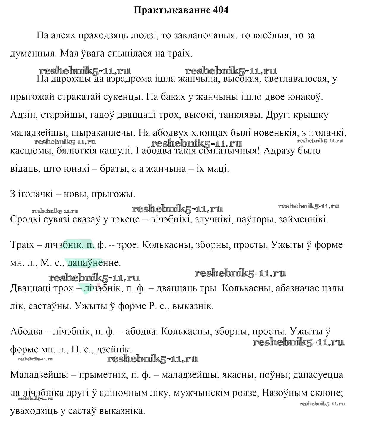 Готовая домашняя работа с ответами по Белорусскому языку за 6 класс Валочка, Зелянко, Мартынкевіч, Якуба, Бажкова Учебник Национальный институт образования 2020 - Практыкаванні 404