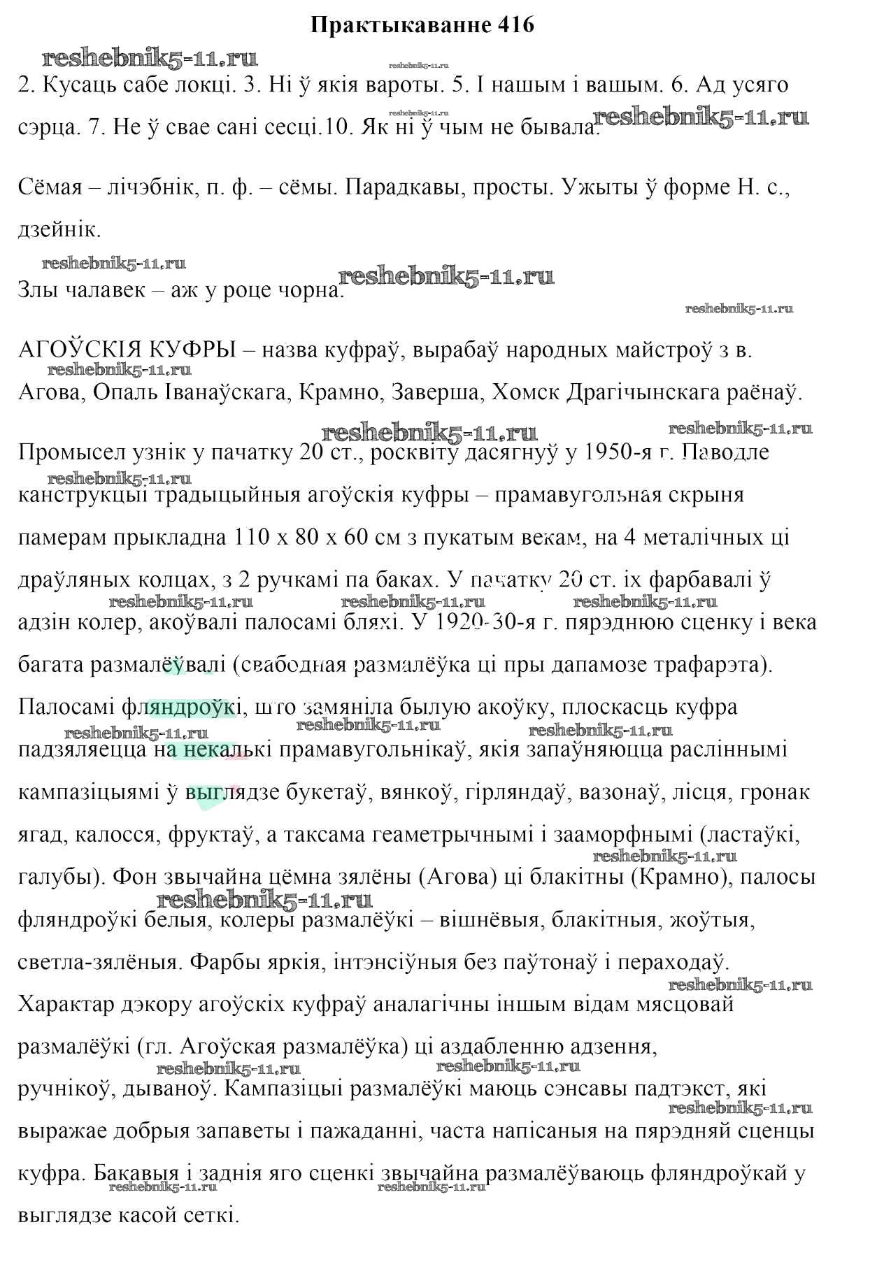 Белорусский язык за 6 класс Валочка Учебник Национальный институт образования практыкаванне 416