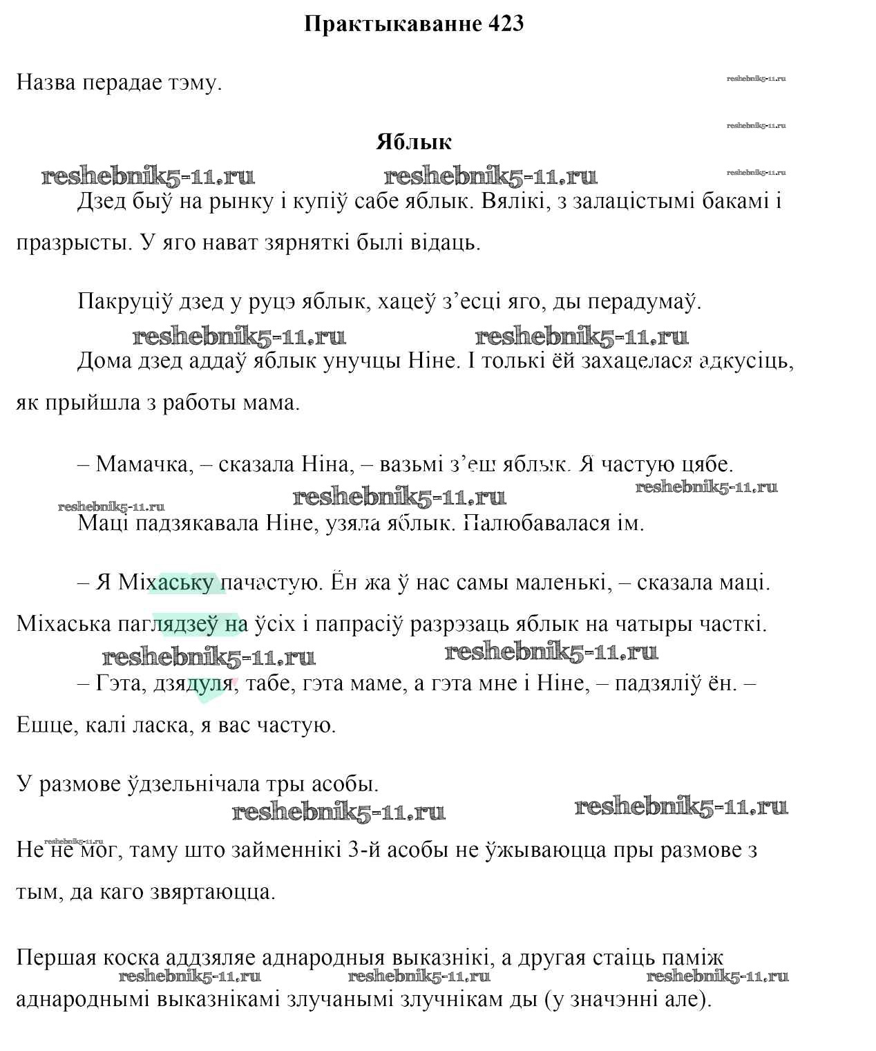 Готовая домашняя работа с ответами по Белорусскому языку за 6 класс Валочка, Зелянко, Мартынкевіч, Якуба, Бажкова Учебник Национальный институт образования 2020 - Практыкаванні 423