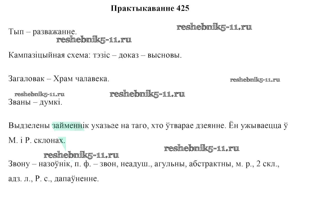 Готовая домашняя работа с ответами по Белорусскому языку за 6 класс Валочка, Зелянко, Мартынкевіч, Якуба, Бажкова Учебник Национальный институт образования 2020 - Практыкаванні 425