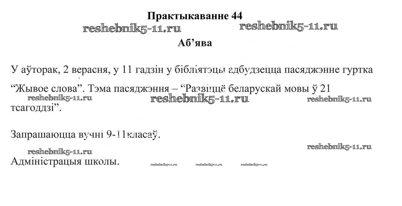 Готовая домашняя работа с ответами по Белорусскому языку за 6 класс Валочка, Зелянко, Мартынкевіч, Якуба, Бажкова Учебник Национальный институт образования 2020 - Практыкаванні 44