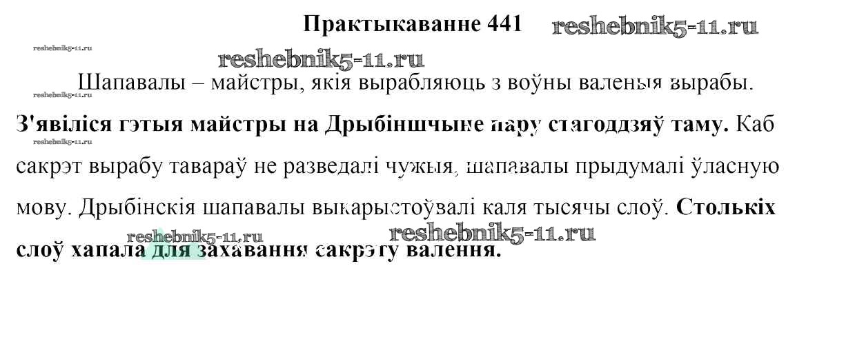 Готовая домашняя работа с ответами по Белорусскому языку за 6 класс Валочка, Зелянко, Мартынкевіч, Якуба, Бажкова Учебник Национальный институт образования 2020 - Практыкаванні 441