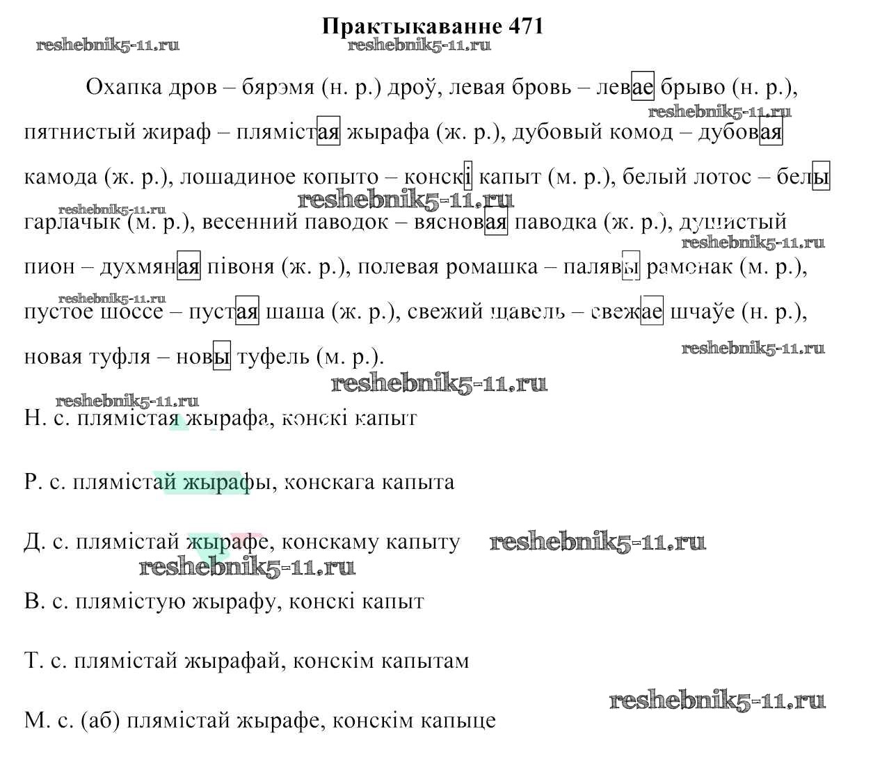 Готовая домашняя работа с ответами по Белорусскому языку за 6 класс Валочка, Зелянко, Мартынкевіч, Якуба, Бажкова Учебник Национальный институт образования 2020 - Практыкаванні 471