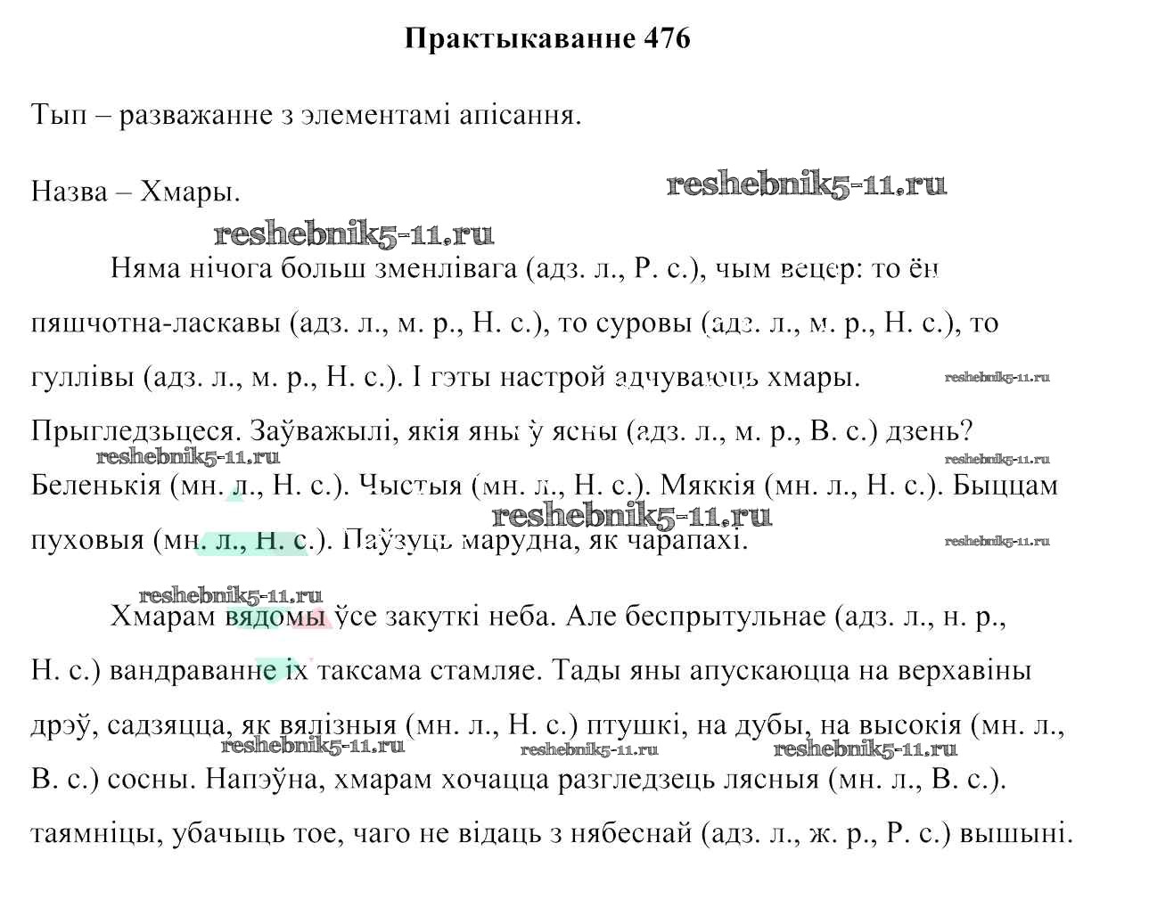 Готовая домашняя работа с ответами по Белорусскому языку за 6 класс Валочка, Зелянко, Мартынкевіч, Якуба, Бажкова Учебник Национальный институт образования 2020 - Практыкаванні 476