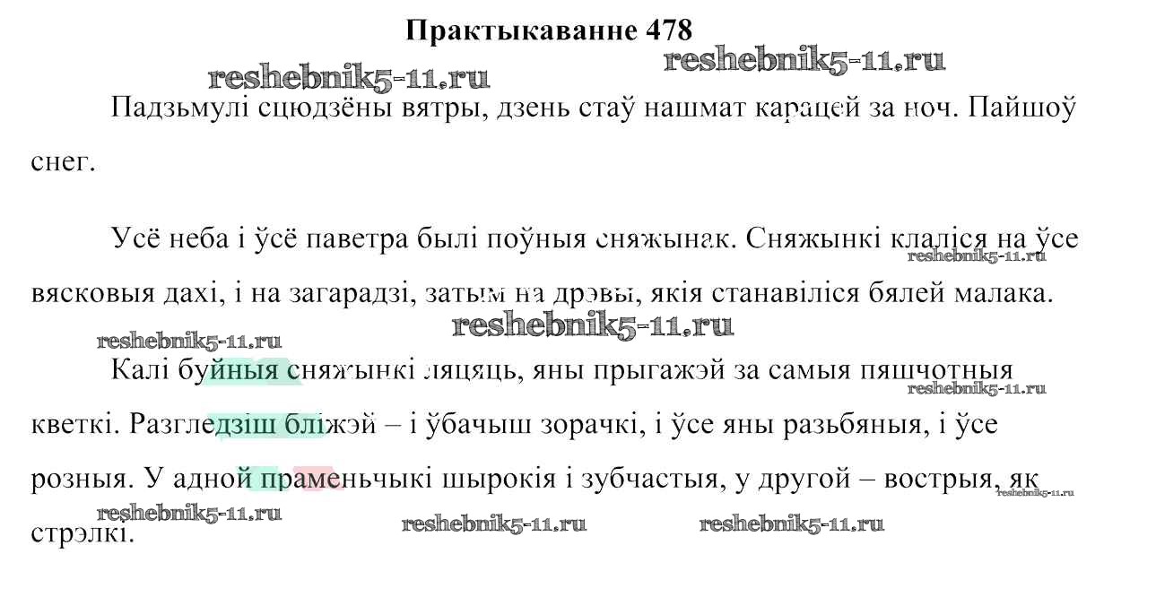 Готовая домашняя работа с ответами по Белорусскому языку за 6 класс Валочка, Зелянко, Мартынкевіч, Якуба, Бажкова Учебник Национальный институт образования 2020 - Практыкаванні 478