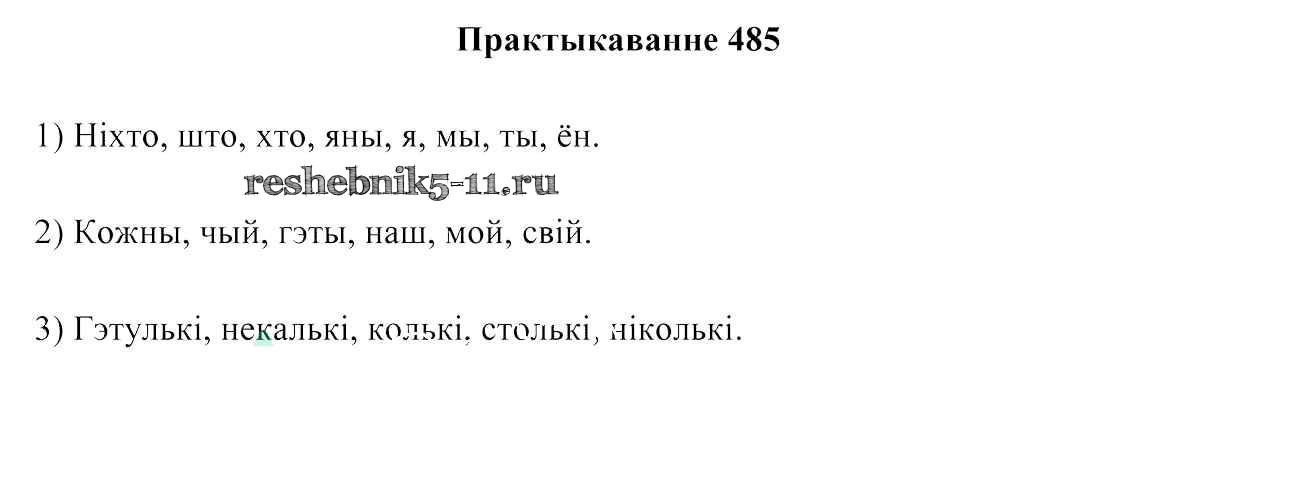Готовая домашняя работа с ответами по Белорусскому языку за 6 класс Валочка, Зелянко, Мартынкевіч, Якуба, Бажкова Учебник Национальный институт образования 2020 - Практыкаванні 485