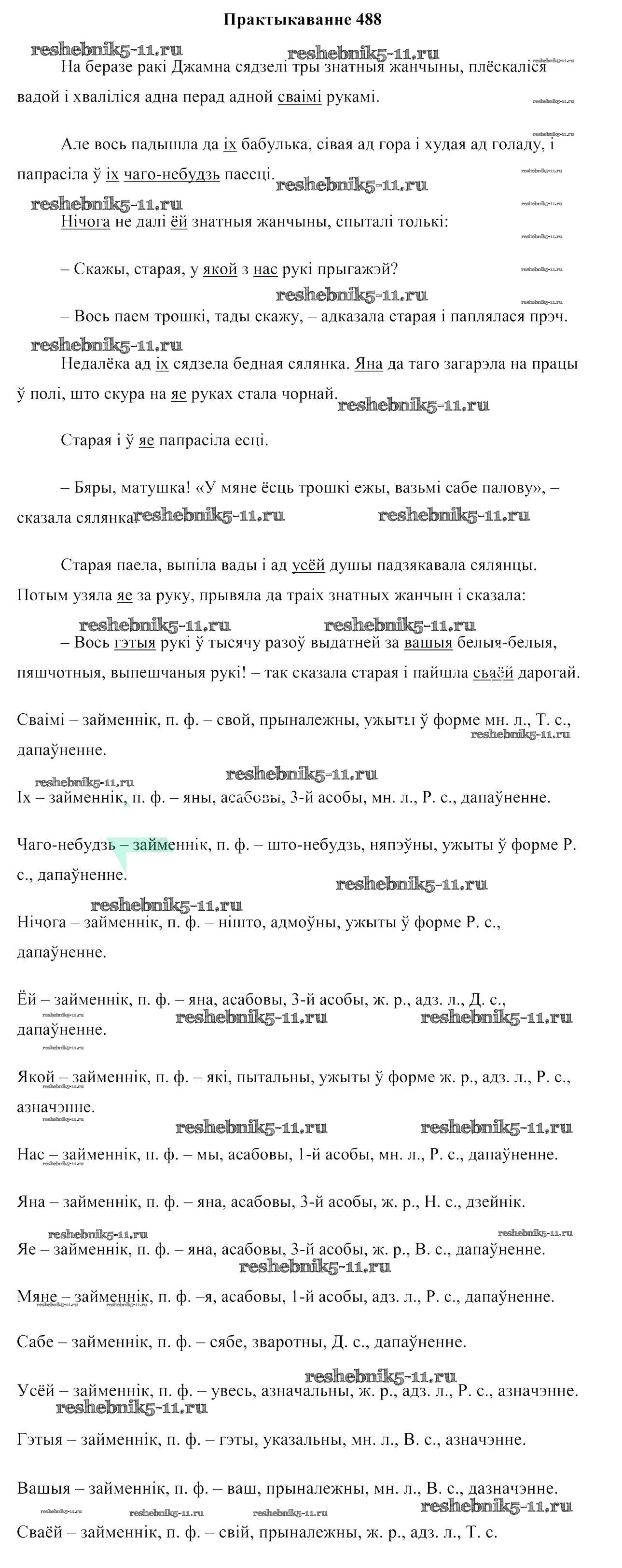 Готовая домашняя работа с ответами по Белорусскому языку за 6 класс Валочка, Зелянко, Мартынкевіч, Якуба, Бажкова Учебник Национальный институт образования 2020 - Практыкаванні 488