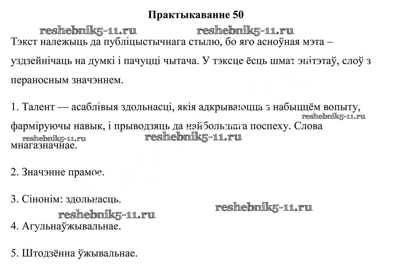 Готовая домашняя работа с ответами по Белорусскому языку за 6 класс Валочка, Зелянко, Мартынкевіч, Якуба, Бажкова Учебник Национальный институт образования 2020 - Практыкаванні 50