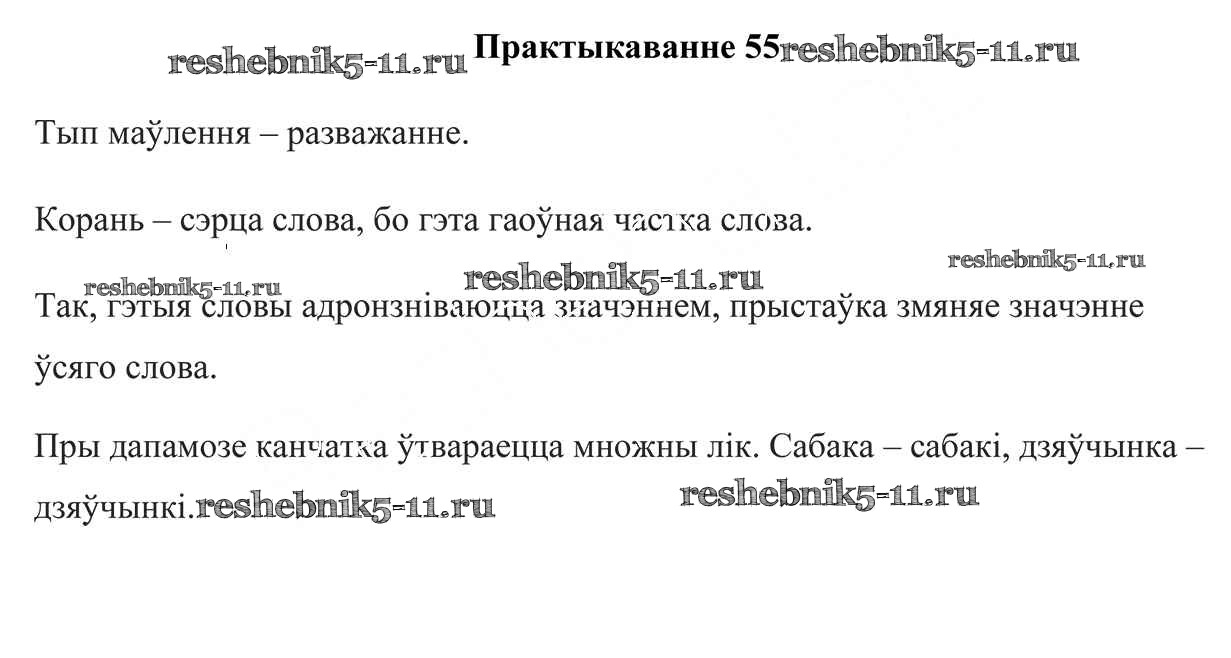 Готовая домашняя работа с ответами по Белорусскому языку за 6 класс Валочка, Зелянко, Мартынкевіч, Якуба, Бажкова Учебник Национальный институт образования 2020 - Практыкаванні 55