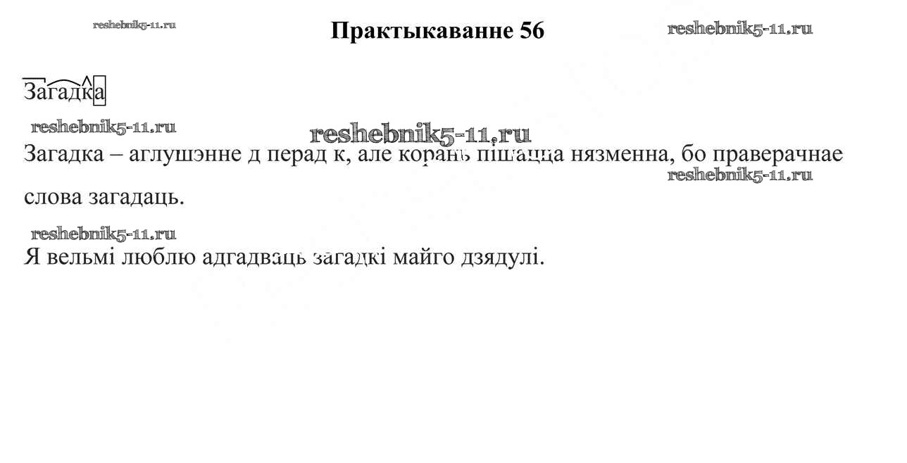 Готовая домашняя работа с ответами по Белорусскому языку за 6 класс Валочка, Зелянко, Мартынкевіч, Якуба, Бажкова Учебник Национальный институт образования 2020 - Практыкаванні 56