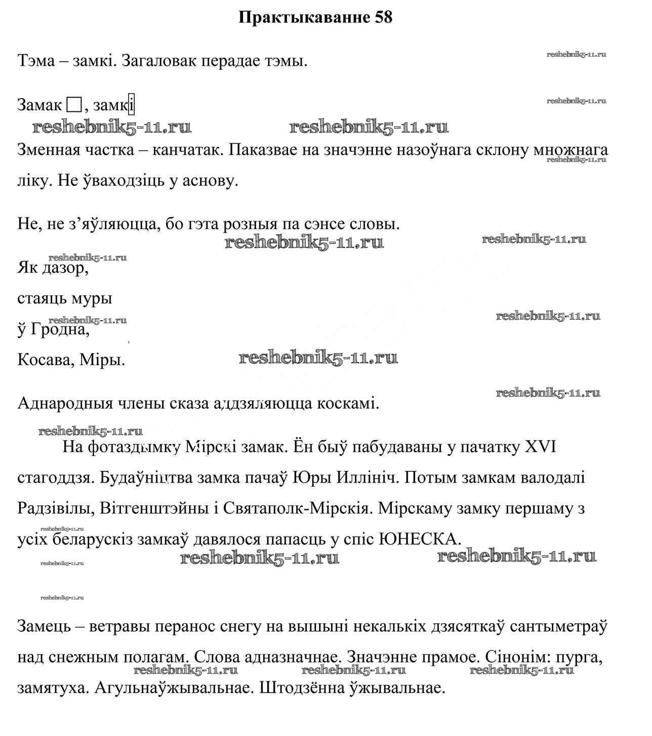Готовая домашняя работа с ответами по Белорусскому языку за 6 класс Валочка, Зелянко, Мартынкевіч, Якуба, Бажкова Учебник Национальный институт образования 2020 - Практыкаванні 58