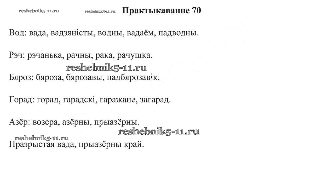 Готовая домашняя работа с ответами по Белорусскому языку за 6 класс Валочка, Зелянко, Мартынкевіч, Якуба, Бажкова Учебник Национальный институт образования 2020 - Практыкаванні 70