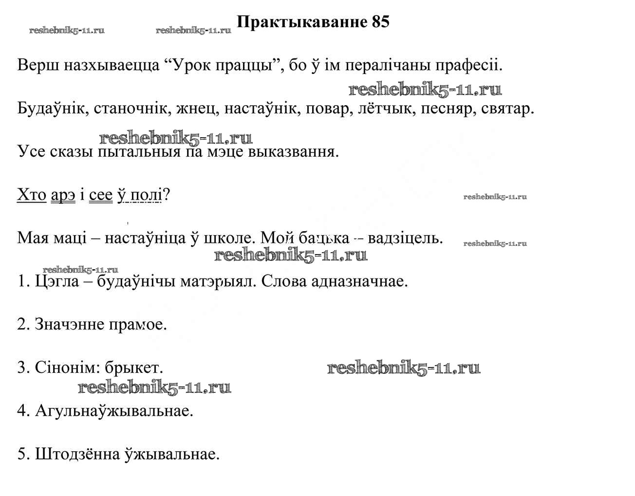 Готовая домашняя работа с ответами по Белорусскому языку за 6 класс Валочка, Зелянко, Мартынкевіч, Якуба, Бажкова Учебник Национальный институт образования 2020 - Практыкаванні 85
