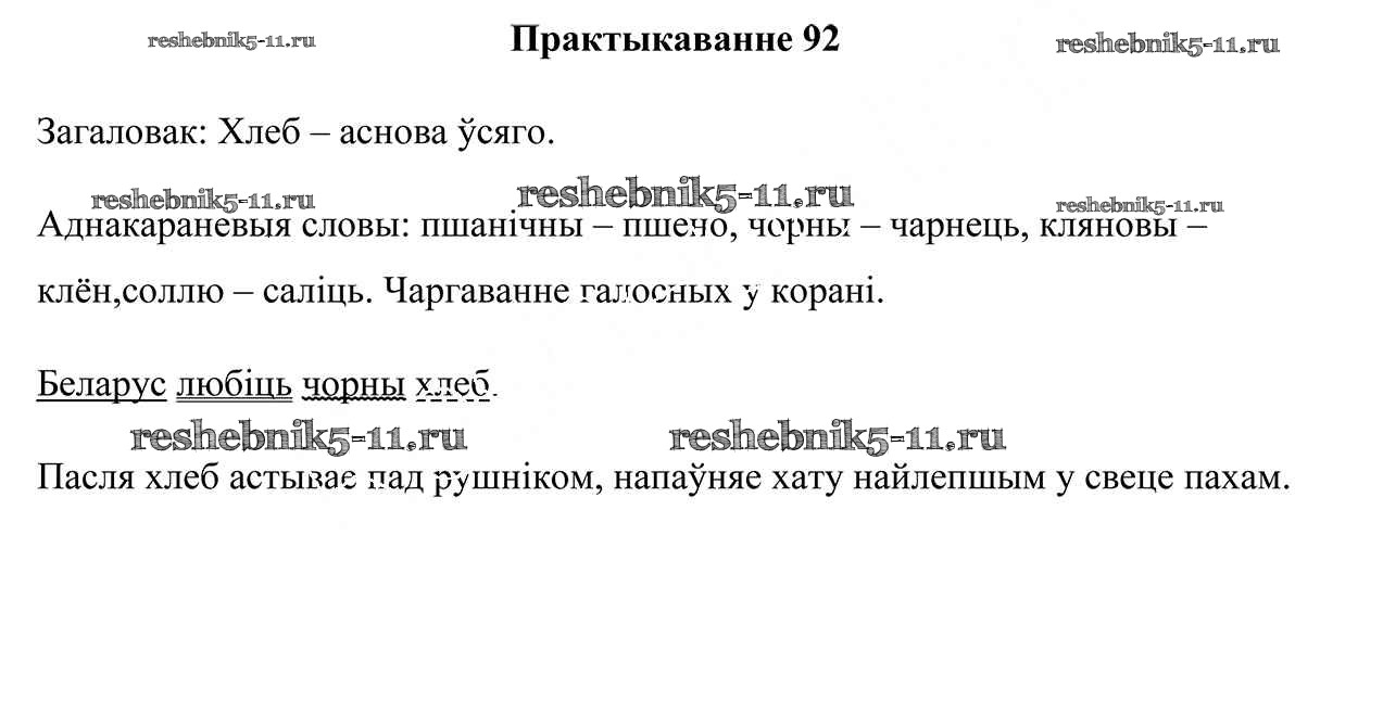 Готовая домашняя работа с ответами по Белорусскому языку за 6 класс Валочка, Зелянко, Мартынкевіч, Якуба, Бажкова Учебник Национальный институт образования 2020 - Практыкаванні 92