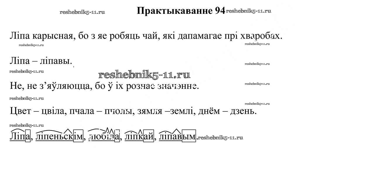 Готовая домашняя работа с ответами по Белорусскому языку за 6 класс Валочка, Зелянко, Мартынкевіч, Якуба, Бажкова Учебник Национальный институт образования 2020 - Практыкаванні 94
