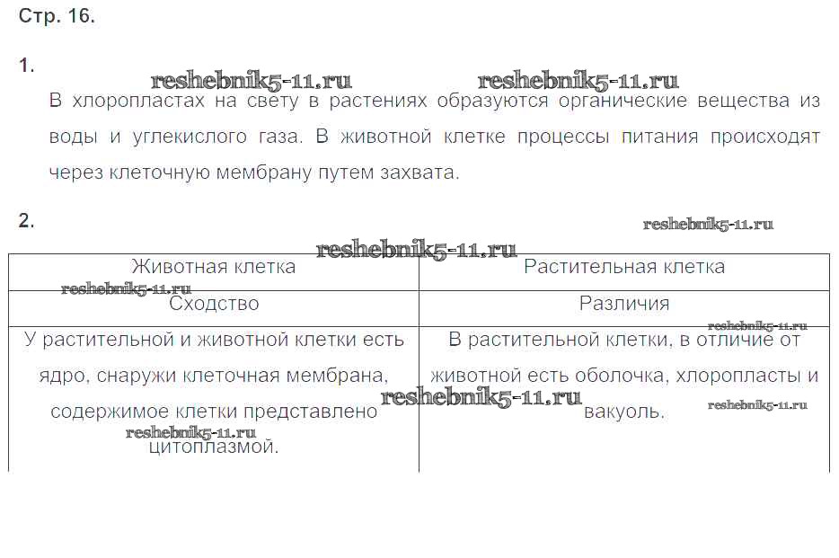 Готовая домашняя работа с ответами по Биологии за 5, 6 класс Сухова, Строганов Рабочая тетрадь Алгоритм успеха Часть 1, 2 Вентана-граф 2015 ФГОС - Часть 1. Страницы 16