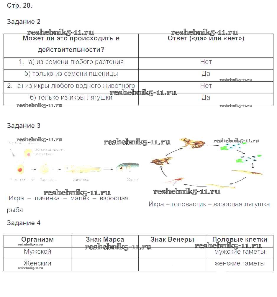 Готовая домашняя работа с ответами по Биологии за 5, 6 класс Сухова, Строганов Рабочая тетрадь Алгоритм успеха Часть 1, 2 Вентана-граф 2015 ФГОС - Часть 1. Страницы 28