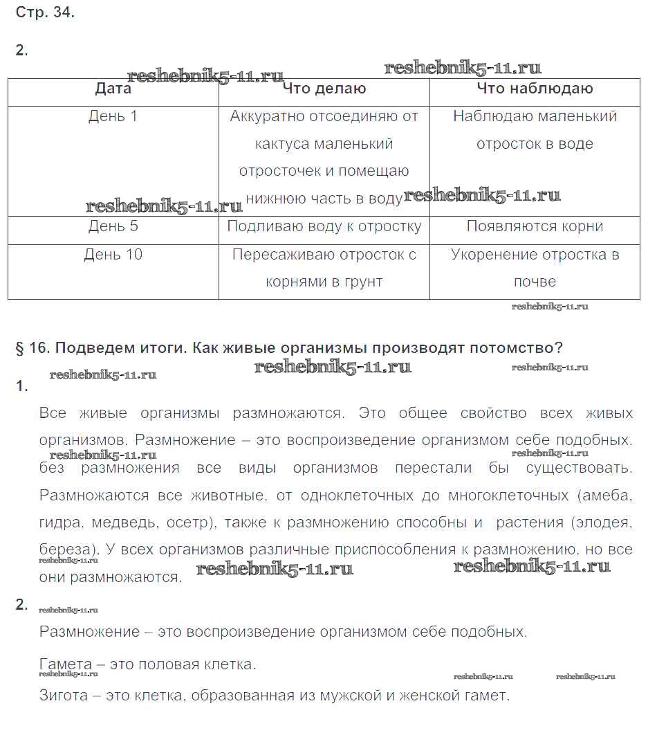 Готовая домашняя работа с ответами по Биологии за 5, 6 класс Сухова, Строганов Рабочая тетрадь Алгоритм успеха Часть 1, 2 Вентана-граф 2015 ФГОС - Часть 1. Страницы 34