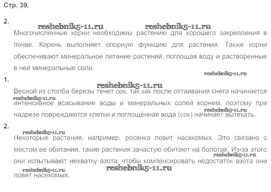 Готовая домашняя работа с ответами по Биологии за 5, 6 класс Сухова, Строганов Рабочая тетрадь Алгоритм успеха Часть 1, 2 Вентана-граф 2015 ФГОС - Часть 1. Страницы 39
