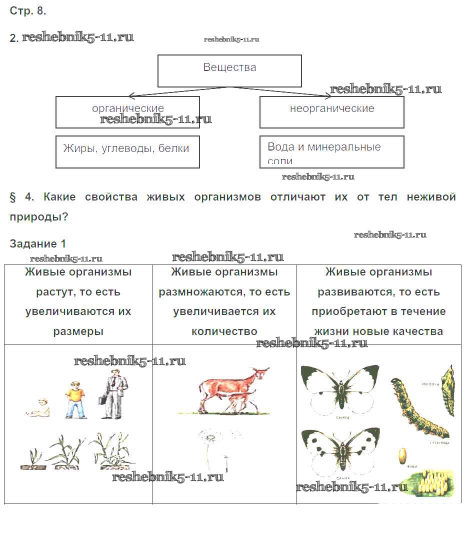 Готовая домашняя работа с ответами по Биологии за 5, 6 класс Сухова, Строганов Рабочая тетрадь Алгоритм успеха Часть 1, 2 Вентана-граф 2015 ФГОС - Часть 1. Страницы 8