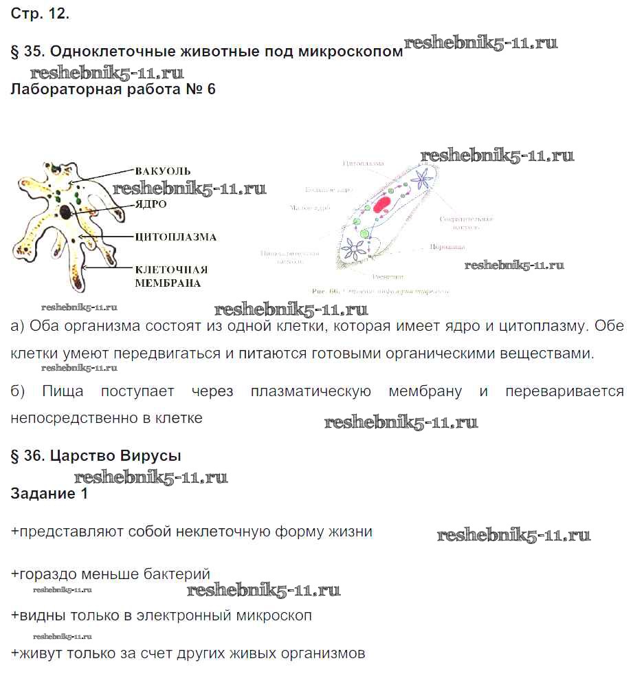Готовая домашняя работа с ответами по Биологии за 5, 6 класс Сухова, Строганов Рабочая тетрадь Алгоритм успеха Часть 1, 2 Вентана-граф 2015 ФГОС - Часть 2. Страницы 12